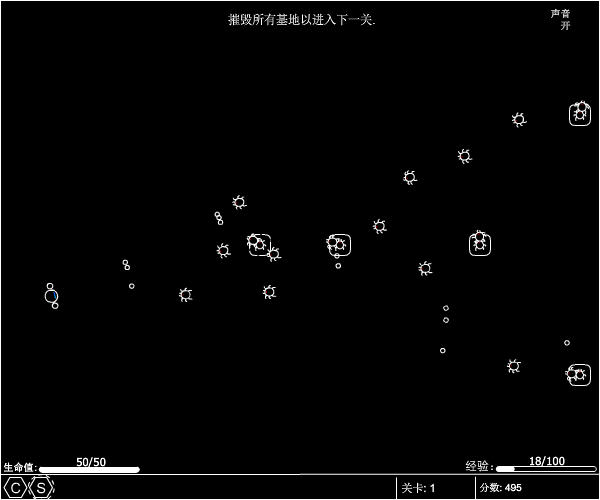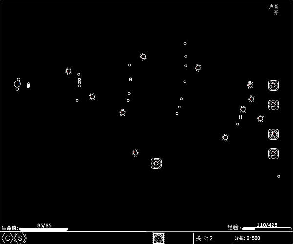 别看这款游戏画面简单,但是难度真心不低。你要合理的安排好自己的技能点,还要注意自己的血量,过关不会回血,命只有一条,不过回血的包裹有一定概率打出来。