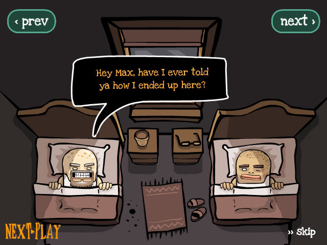 感觉作者很用心,每关中间都有美国漫画风格的过场漫画,两个神经病人的对话极为喜感。