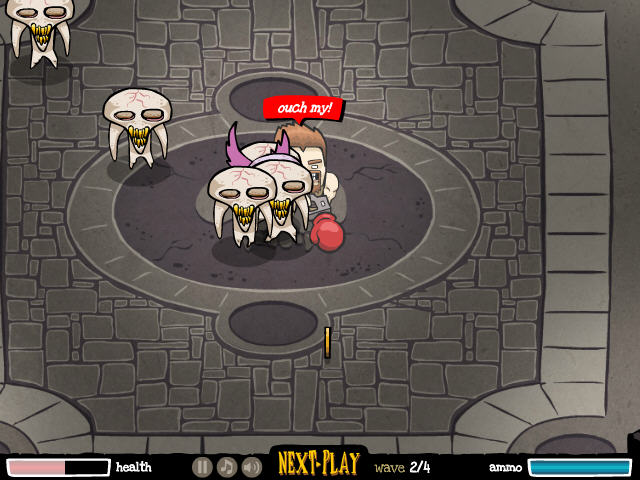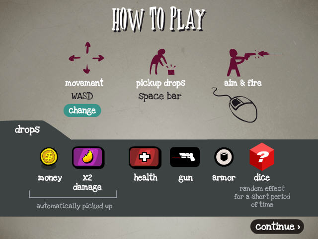 射击类小游戏,与以前的方块人大战僵尸比较类似,都是在一个小场景里对抗蜂拥而来的敌人,升级选项丰富,还有多种多样的奇葩道具。