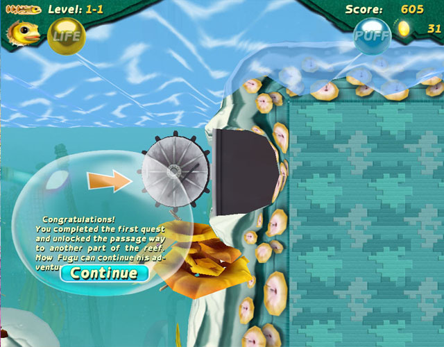 游戏中包括数十个充满挑战性的关卡,及考验记忆力的迷你游戏。和Fugu一起在海底世界展开冒险,攻击敌人,收集食物,寻找宝石,并搜索其它的家庭成员,帮助它们顺利返回家园?