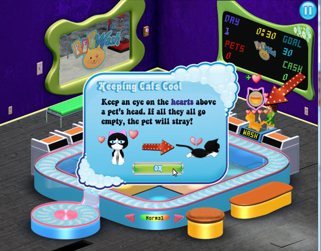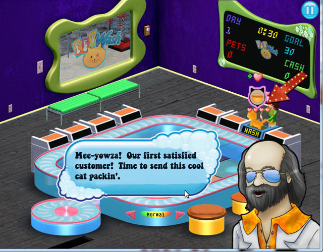 宠物清洗店是一款模拟经营类游戏,在游戏中玩家将帮助经营一家宠物澡堂(现实有这样的地方吗?)给各种可爱的宠物洗澡,慢慢的积累资金扩大店铺的规模(给猫洗澡还要洗出花样)。