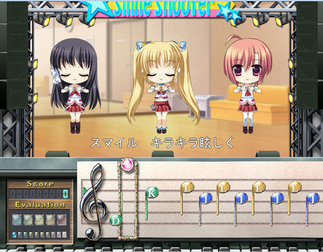 《微笑射手》是一款虚拟偶像音乐类游戏,在日本有一种被称为虚拟偶像的角色在网络上盛行,本作就是其中之一,他们有自己的专辑,虚拟的人物背景,环境等等,在游戏中玩家将与她们一起经历成长的过程,一起弹奏好听的音乐。