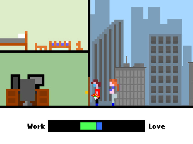 一款典型的8-bit 佳作,简约却不简单。游戏讲述了人生三个阶段中因为不同的抉择而导致不同人生的结局的故事。