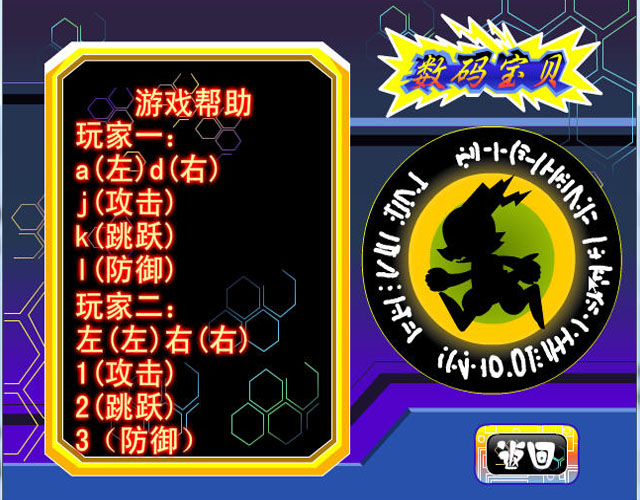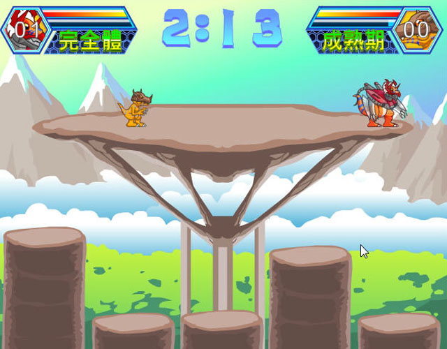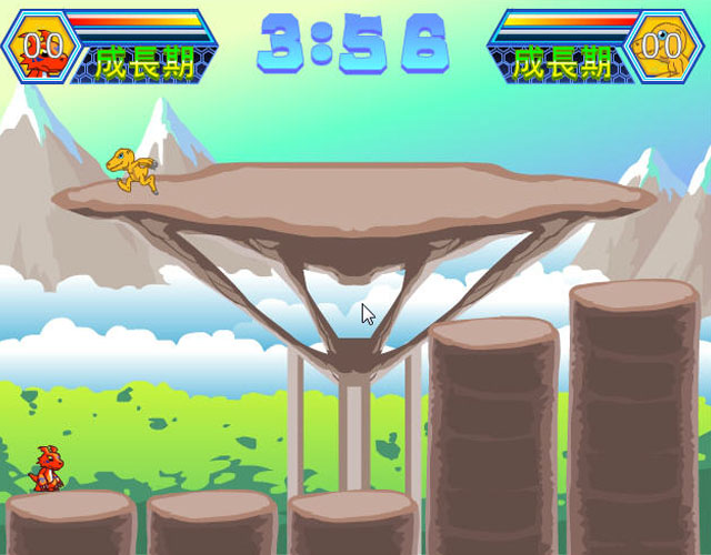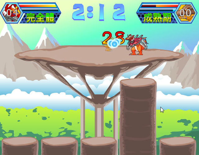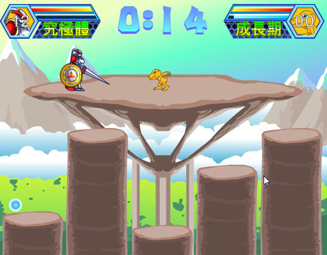 《数码宝贝格斗版3》是一款采用了动漫中原型数码宝贝的制作的同人动作小游戏,玩家可以选择想要控制的数码宝贝进行对战,该作中数码宝贝也是可以进行进化的,你需要特别留意掉落的徽章,抢在对方之前获得他们你就会完成进化。