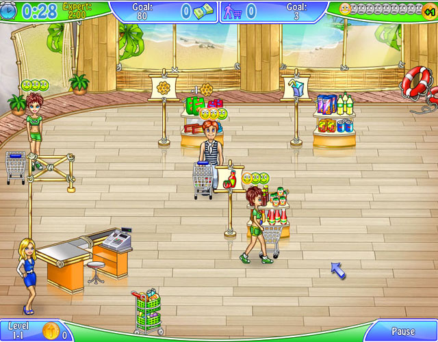 《美女超市经理》是一款模拟经营类游戏,在游戏中玩家要帮助美女Kate在超市里工作,慢慢当上经理。刚开始提高客户满意度,提高顾客购买力,让仓储更加高效的运行,同时,还要提高超市的利润,最终帮助她成功开启更多的新的超市。