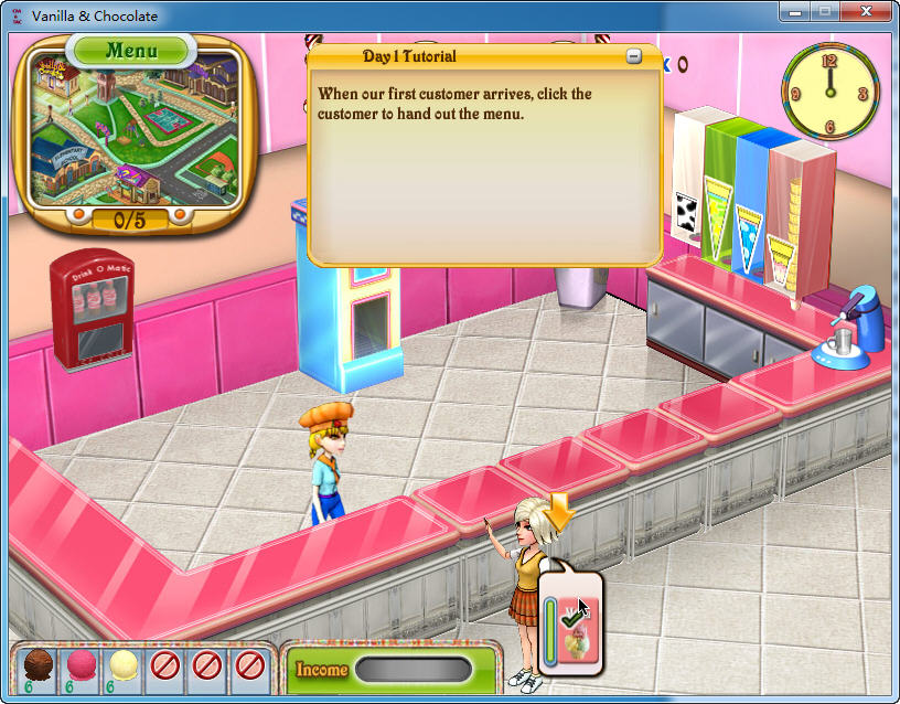 在《香草巧克力》中,玩家要负责店铺的进货,广告宣传,10余种口味的冰淇淋将逐渐解锁,可以贷款,对加工器械和店铺装饰进行升级,还可以雇佣员工,通过消除和拼图游戏为食物材料的等级进行升级,以及开发新的冰淇淋品种,并为其命名。
