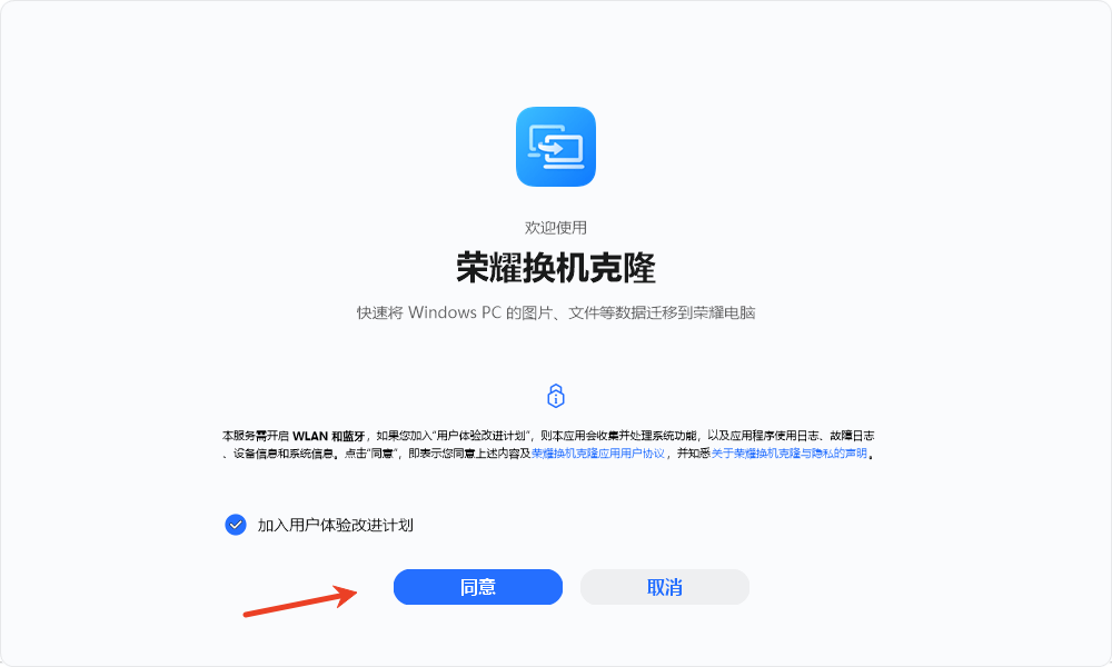 解压后,运行荣耀换机克隆.exe;