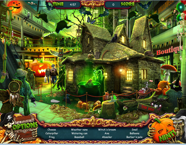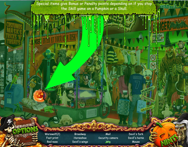 《万圣节2:海盗的诅咒》是一部高度原创的隐藏物品游戏,并包含大量益智和迷你游戏。“不给糖果就捣蛋”的场景包括购物市场、女巫的屋子、万圣节游乐场和海盗船等等。南瓜、骷髅、蝙蝠和幽灵随处可见!在万圣节游乐场,你可以乘坐碰碰车、鬼怪火车,探访德古拉的美丽城堡,以及其他一系列吸引人的地方。然而,海盗的魔咒笼罩了游乐场,快乐时光不再,在这个幽灵般的地方,你必须找到海盗船了解除魔咒。