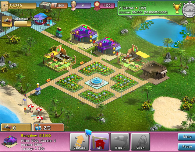 游戏以充满阳光的热带岛屿做为游戏背景,所表现出的卡通效果更为浓烈。其中更是包括了3个优美的旅游胜地区域,42个详细的关卡,以及12项建筑升级。