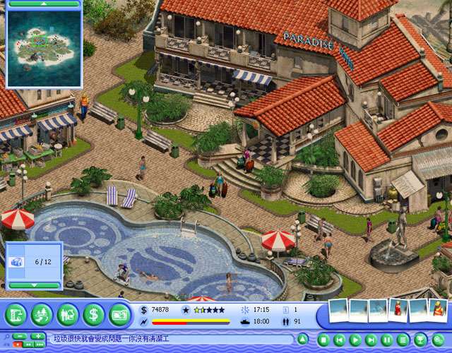 模拟度假村是2003年的发行的一款模拟经营类游戏。虽然时间有些早了但是游戏制作的非常精致,在游戏中玩家可以在自己的度假胜地雇用招待、救生员、建筑工人等人物并合理安排其工作,合理设置娱乐设施,以让度假胜地能有效运作并吸引游客。