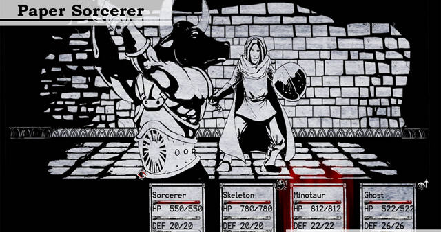《纸面巫师 Paper Sorcerer》所呈现的简约黑白风格让人着迷,它并不是那种由寥寥几个草图构成的 RPG 游戏,其美术造诣很容易让你回想起老式的《龙与地下城》等书籍。游戏以第一人称的视角展开对地牢的探险,一路上将遭遇各种谜题,获取武器装备升级队伍。游戏共有41个地牢场景,全部通过之后,还可解锁另外9个地牢场景。可想而知,游戏有着庞大的架构。而且玩家可以学习的技能超过300种,战斗是采用回合制,人物移动起来像是点击式的冒险游戏。此外,游戏的回合制对战非常复杂,玩家需要考虑何时该施展法术,何时该防卫,何时根据敌人的情况更换打斗战术。