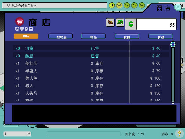 在这款游戏最重要的就是怪物的DNA,但是并非只要有DNA就能够制造出怪物,玩家需要查看怪物的制造方法,自己买齐所有的物品后才能制造怪物。