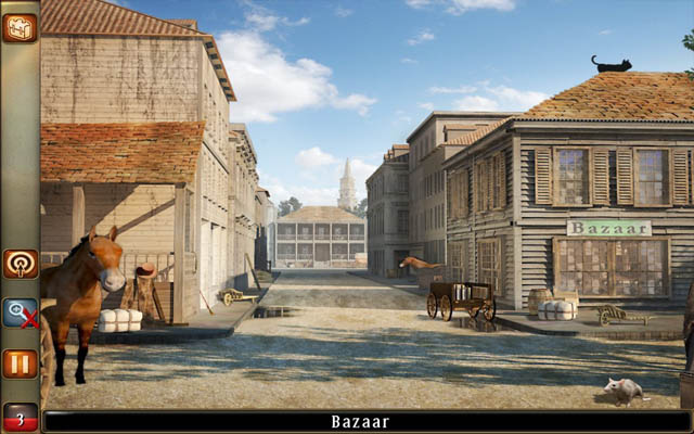 又一款AVG游戏《金银岛:金甲虫》带给大家,游戏依然采用AVG的惯用:手法单词找物其中加入了一些小的解密游戏,不过在本作中根据剧情的发展玩家有时还需要运用找到的物品来解密,比如先找到圆木,下一步会要寻找放置圆木的位置,这就要自己开动脑经来想圆木应该放在什么地方使用了。