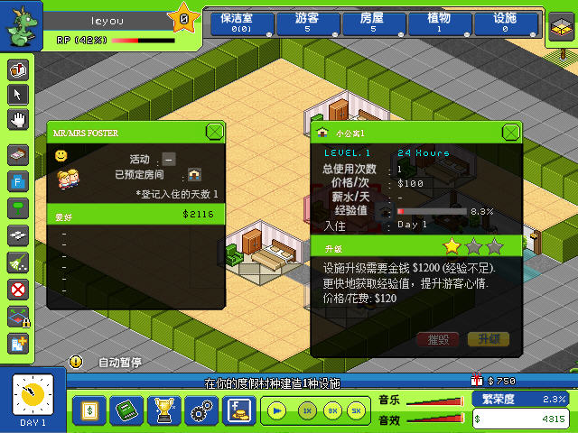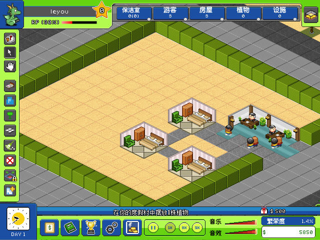 《帝国度假村》是一款精炼小巧的模拟经营类游戏,独特的像素风格,丰富的游戏内容,打造一个完美的度假胜地。