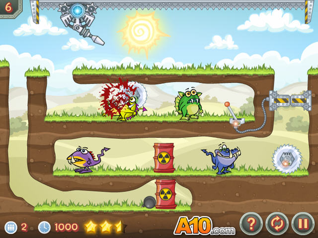这款画面卡通,但是部分关卡略带血腥的游戏中,玩家将会控制一个激光炮台,利用激光的反射等远离来利用周围的东西消灭所有的怪物。