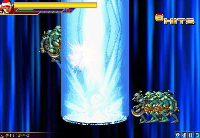 2P:↑ ←↓→控制人物的跳跃和左右移动,小键盘数字键1,2为拳脚键,3为闪避键,456为超必杀技。