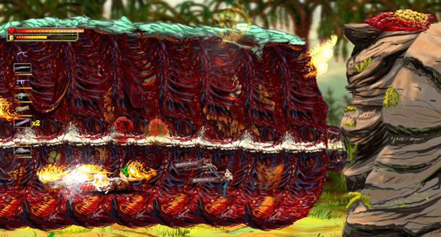 这是一款2D横版过关游戏,画面色彩极度绚丽,但是很明显的一个问题就是其图层叠加显的非常不自然,没有过渡,没有混合,直接就将新图层放置在前一个图层上。