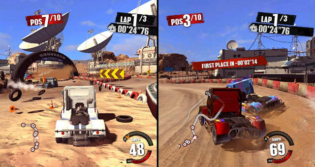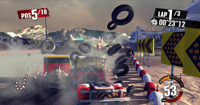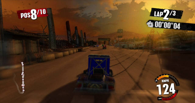 游戏一开始会是一片混乱,介于大卡车庞大的体积,游戏的赛道显得非常窄,玩家的卡车如果不断的撞击,那么卡车的损坏将会显而易见的出现在卡车上。