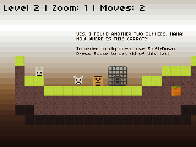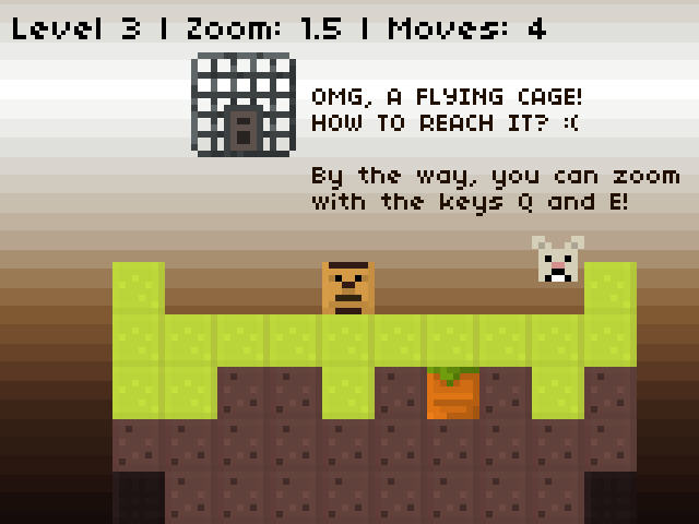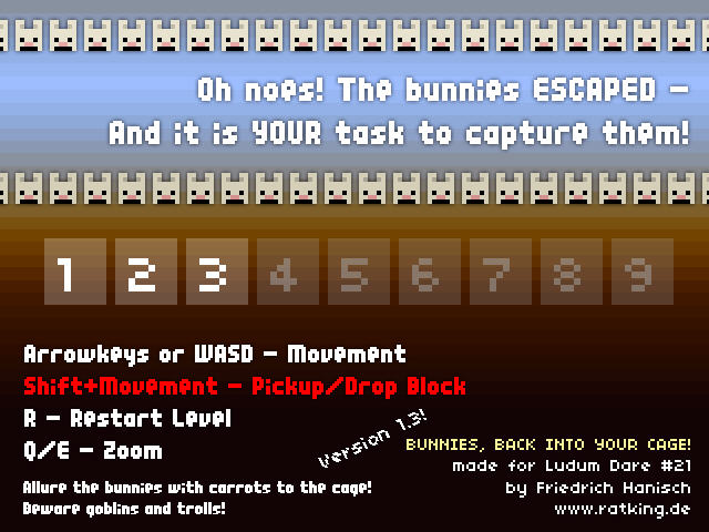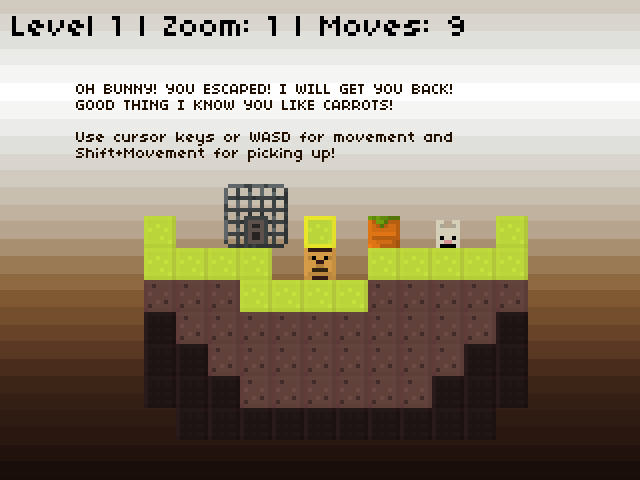 复古游戏又来咯,看到这种粗糙的像素画面,相信又有人会激动不已了!这款益智游戏的目标是要把逃走的兔子捉回笼子里,而所用的道具自然是胡萝卜。玩法有点类似推箱子,要想方设法开辟出道路拿到胡萝卜,然后把胡萝卜放到笼子了。