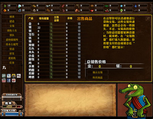 你可以卖资源,以及购买!按钮在屏幕上的贸易窗格中的右下侧