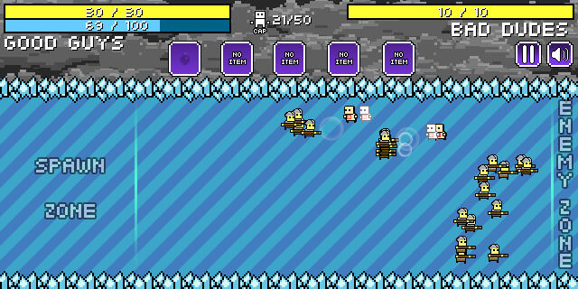 这个出兵策略游戏的玩法有点奇特,敌人分三路进攻,你可以从城堡拖出士兵到其中一路,然后遇敌后又进入即时出兵的玩法,可以在一定范围的区域内派出小兵战斗,也可以丢出各种道具以辅助。
