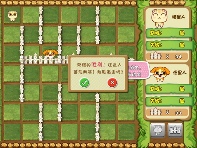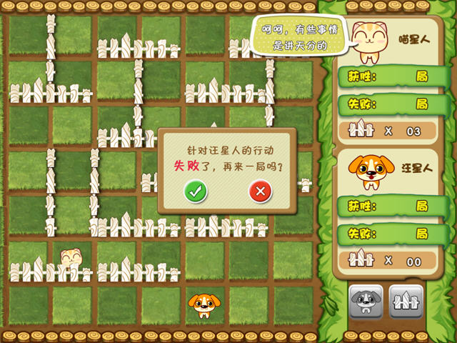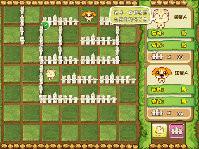 这款可爱的猫狗卡通游戏对于玩家的智力来说是一个非常大的考验,游戏本身的AI设计比较高,玩家可能要多次失败才能够慢慢摸索出游戏的窍门所在。