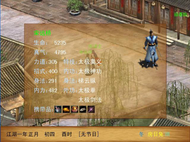 高自由度,半即时回合制战斗、任意NPC PK,门派加入、养成,生活技能辅助,招式系统。