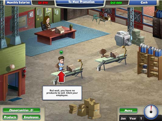 用一个廉价的仓库来作为你的办公室工作,你就是老板。调动你的团队的员工,发挥他们每个人的独特技能和个性。然后销售和宣传你的产品,提高你的员工的技能和士气,抓住每一个机会。在你的经营之路上有六个可怕的老板,只有最精明的经理人才能把握住每一个赚钱的机会,最终达到自己的理想。