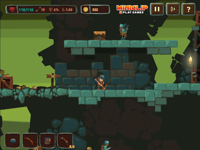 RPG游戏,讲述一个弓箭手打败邪恶对手的故事。通过打败敌人、射箱子得到金钱,然后买装备。画质不错,容易上瘾,有些难度。