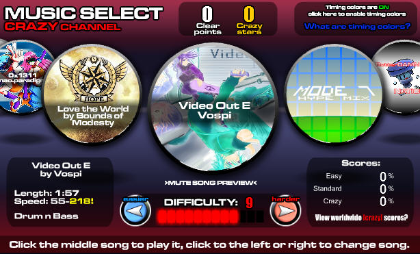 DJ狂热是一款非常少见的FLASH DJ游戏,游戏的操作手感很舒服,即使是此类游戏一贯苦手的玩家也能够毫不费力的上手,此游戏的系统极其完整,程序判定和节拍对应得也非常出色,难度设置也适应了各个不同的玩家群体。