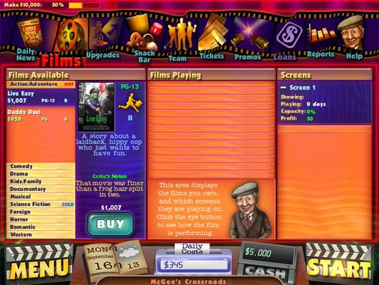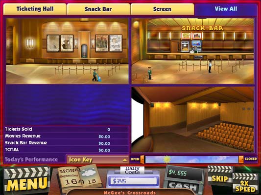 丰富的游戏系统真实的再现了电影院的日常经营生活,玩家们在游戏中接管一家不景气的电影院,通过管理经营,形成一家五星级电影院。