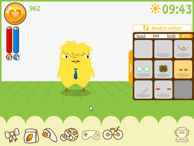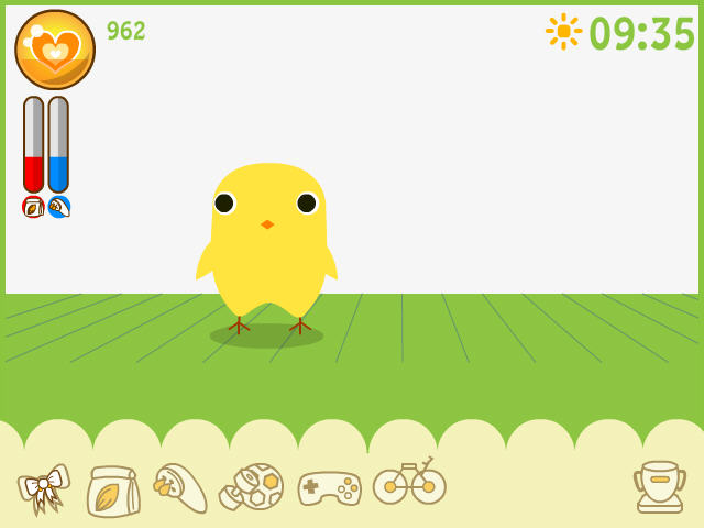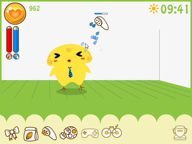 很可爱的的养成游戏,可以给小鸡打扮,可以喂食,可以洗澡,可以陪她打球,直到发现最后的惊喜。