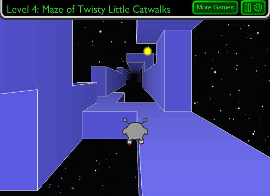 在这个游戏中,你是一个小人,要一直向前跑。这种游戏很多,但为什么我要介绍它呢?因为它有很强的速度感和让人头晕眼花的旋转空间。游戏只有三个键:←、→、空格。