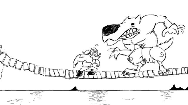 素描画风,恶搞的剧情, 一天大力水手在海上小船里悠闲的仰望天空,突然天空飘来一封求救信,水手一看,立马奔向灯塔,一路过关斩将击败海盗、肌肉男和狼人,最终抱得美女归,谁知这一切都是一场梦!梦中强壮威猛的大力水手原来只是一又矮又搓的小老头,这时竟真的飘来美女的求救信,等待他的将是怎样的冒险?