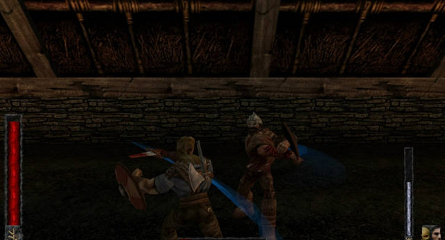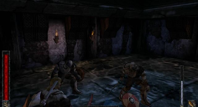 《北欧神话》是近来不多的优秀第三人称动作游戏,如《异教徒》(Heretic)之类更象是第一人称视角的变种。此外在混战中,甚至在死亡竞赛模式中只使用冷兵器的概念,可以说是绝无仅有的。这样增加了贴身肉搏的几率,对于开发者的技术水平也是一种考验,而对于玩家而言却是全新的体验。