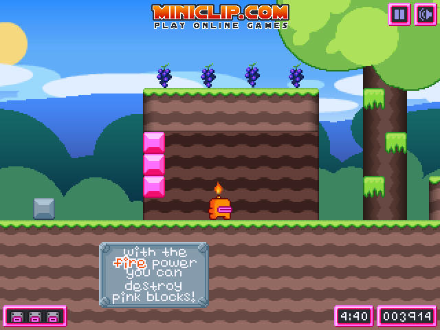 游戏一共20关,跳台加闯关,可以像超级玛丽一样踩其他属性的小怪物,从而获得它们的能力. 虽然是很简单的游戏,可清新的像素风加上优美的音乐,还是很有爱的~ 跳台手感不错,很好通关
