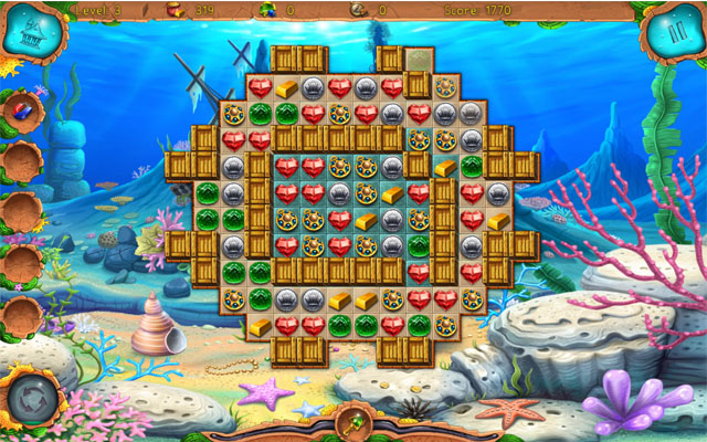 消除类游戏,用得来的金币装饰海底,有点像亚特兰蒂斯系列,可爱卡通的设计,带动了画面感,非常有趣。