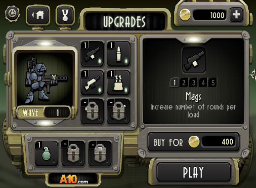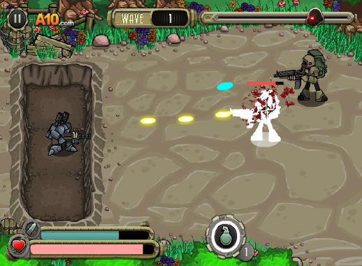 游戏玩法有种街机味,我们的主角人蹲在左边的战壕里,敌人就从右边出来,点击屏幕就会站起来射击,松开点击就继续缩回去……刚开始,游戏玩法确实就这么简单,不过到后面,它难度倒会慢慢涨到刺激的街机水平,像是往战壕里扔斧头的敌人,一枪横扫半个屏幕的机枪兵,这些怎么看怎么变态的敌人都会跑出来,反应慢点都当场领便当。