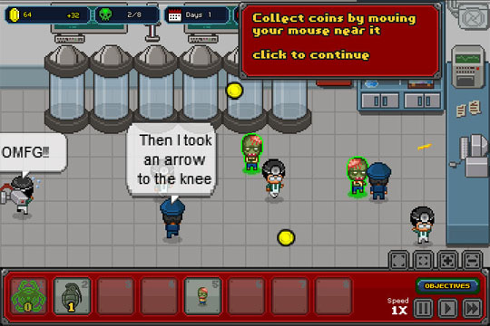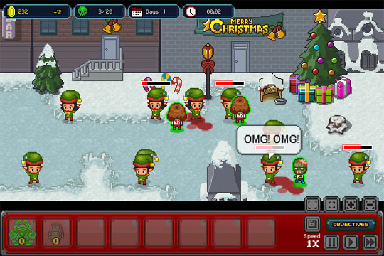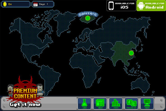 你的目标是使丧尸病毒感染世界,毁灭全人类(哇哈哈),相当恶搞。像素画风的游戏中往往会出现游戏性十足的佼佼者,这款就是了。