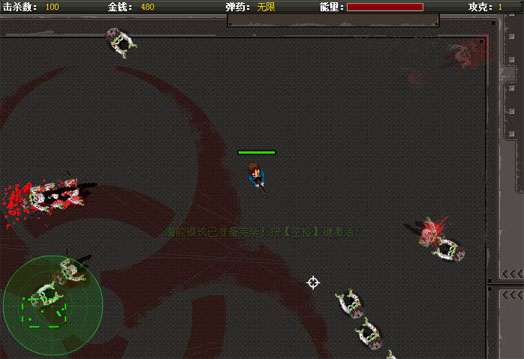 在有限的空间内尽可能的长时间生存,《丧尸刺客》是一款射击防御类型的游戏,玩家扮演一个枪手,需要抵御30波的生化丧尸进攻,并且消灭掉3个boss。