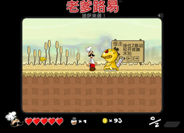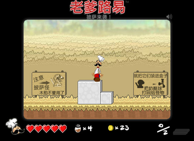 一款以收复披萨为主题的横版闯关游戏,看起来有点恶搞的意味,特别是最后救人的滑轮,两盒披萨成了吊起陷阱的关键重量……