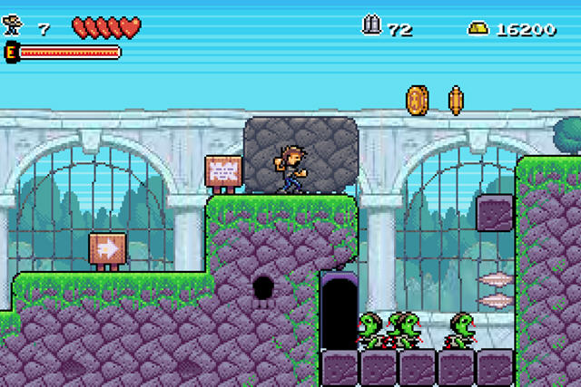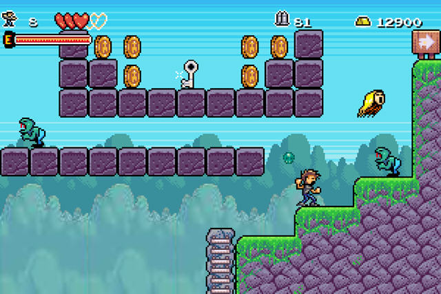 这款游戏可以说是借鉴了很多游戏,包括经典的横版游戏恶魔城与马里奥。你在游戏中需要通过收集钥匙来消除障碍并且获得一些其他的道具,否则无法顺利过关。