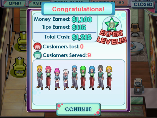游戏画面整体效果鲜艳明亮,色彩搭配丰富,极具视觉享受。多种样式的卡通人物造型打造出不同性格。特别值得关注的的是游戏中包括10家不同风格的店铺设计,丰富的变化会常常带给你耳目一新的感觉。