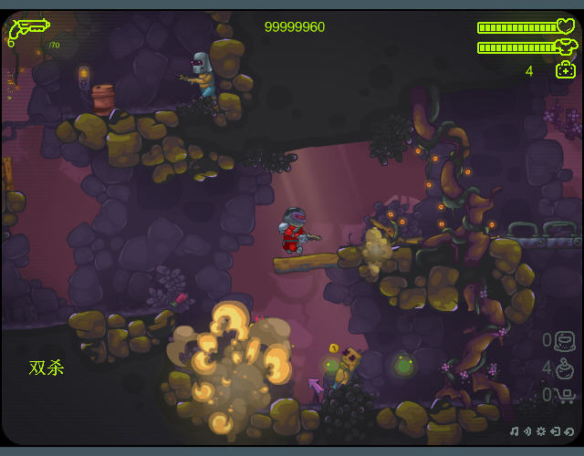 游戏为中文无敌版,受到敌人攻击不会掉血,金钱基本算是无限。