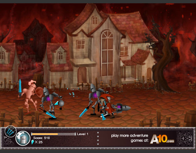 类似《战斧》一类的经典横板动作游戏,主角是一名身穿盔甲的骑士。