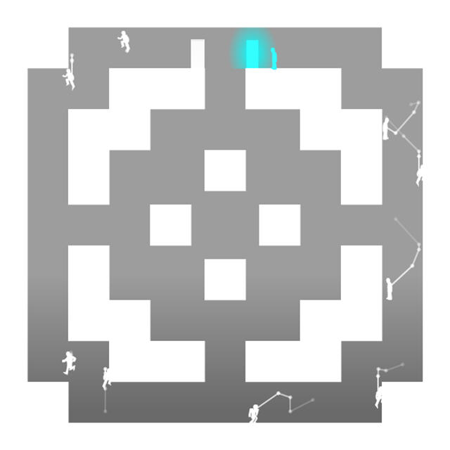 游戏关于影子的设定非常有意思,每隔一段时间都会从出口刷出来一个影子,影子将会模仿玩家的行走路线,玩家如果碰到自己的影子,就要重新开始。