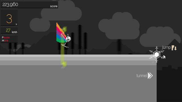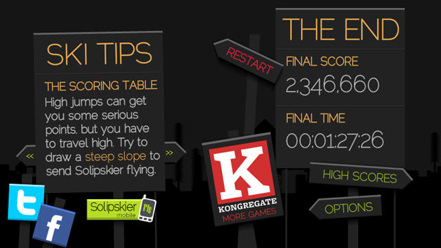 游戏随机出现的各种加速以及障碍,加上玩家告诉滑雪时的冲刺,游戏给人一种欲罢不能的感觉,轻松上手而且很容易上瘾。