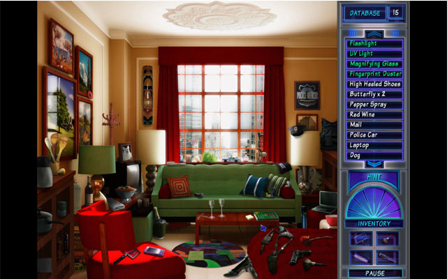 中规中矩的冒险解谜游戏,老套的找物玩法体验游戏剧情,游戏的特色还是十分鲜明的,利用查血迹的紫外线灯、查指纹的刷子、手电、放大镜,帮助你找到所要的物品。体现侦探过程中最真实地感受。