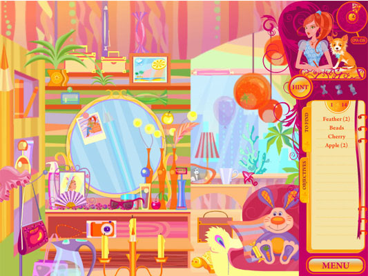 以神秘视线游戏找单词为基础,包括按阴影找图形,寻找多个物品,找不同等类型的关卡变化。游戏中一些物品需要你打开橱柜,或关上灯才能发现,也许会隐藏在电视播放的动画中,设计的非常巧妙。