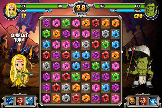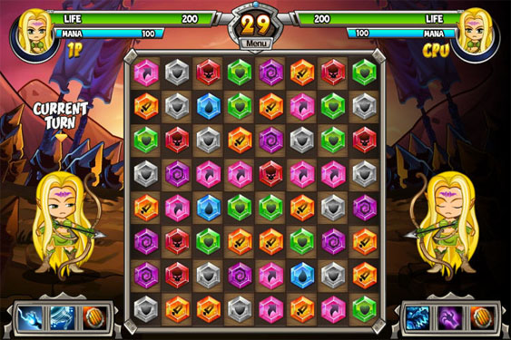 《宝石魔法师无敌版》是一款对战性质的消除类游戏,玩家们可以选择角色,搭配技能,通过消除宝石获取不同种类的能量进行攻击,无敌版是我方进入无敌状态,适合新手体验。